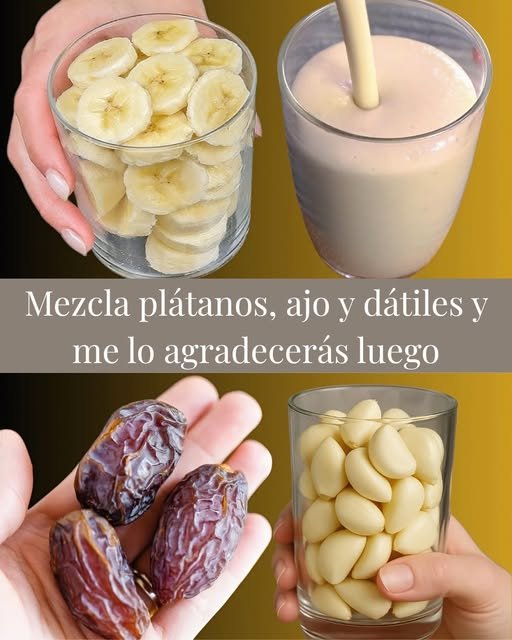 ¿Sabías que un simplu batido poate schimba tu bineestar en solo o săptămână? El batido de plátano și ajo, cu el toque dulce de los dátiles, combina lo mejor de tres alimentos medicinales para revitalizar tu cuerpo desde adentro. Este amestec natural îmbunătățirea digestiei, reglarea presiunii arteriale, întărirea inimii și aducerea energiei duradei.