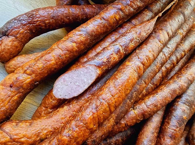 Sunt cârnați potriviți pentru mese festive, mic dejunuri copioase sau gustări reci și pot fi congelați cu succes. Tehnica de uscare, afumare și opărire asigură o consistență plăcută și un gust natural – exact cum trebuie să fie un cârnat tradițional făcut în casă, fără grăsimi în exces sau aditivi artificiali.