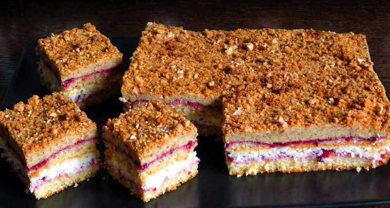 Prăjitură cu cremă de cocos și nuci, pandișpan pufos și dulceață acrișoară – echilibru perfect de gust!
