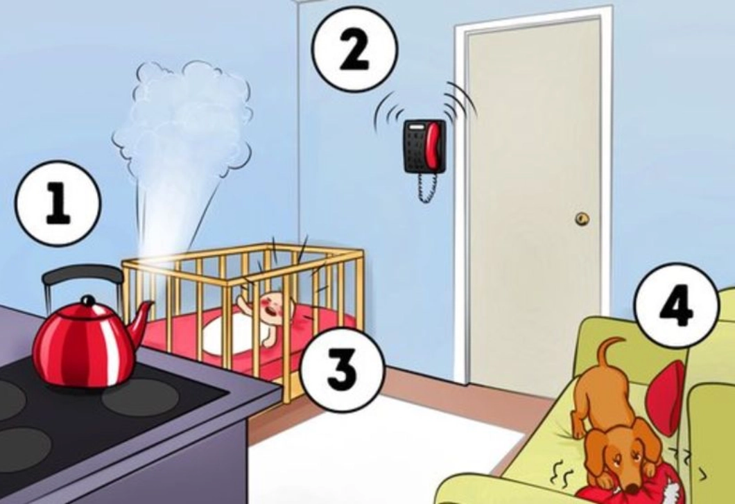 Testele de personalitate pornesc adesea de la asemenea scenarii de decizie. Nu sunt instrumente științifice, ci mai degrabă puncte de reflecție. Ele atrag atenția asupra faptului că, în spatele priorităților noastre, se ascund adesea tipare mai puțin conștientizate. În imagine apar patru situații urgente: fierbătorul fluieră, copilul plânge, telefonul sună, iar câinele tocmai destramă pernele. Întrebarea pare simplă: de care te-ai ocupa mai întâi?