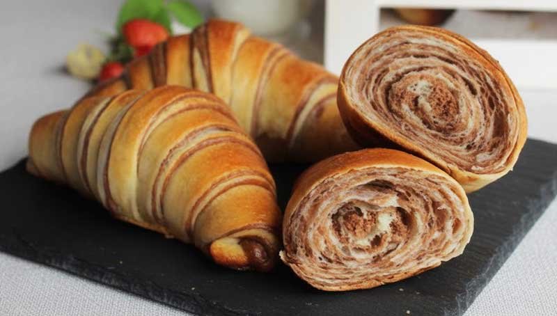 Dacă vrei să pregătești un desert deosebit, cu un aspect vizual care atrage toate privirile, dar fără să complici lucrurile, aceste cornuri bicolore sunt exact ce cauți. Alternanța foilor cu cacao și vanilie, umplutura dulce și textura moale le transformă într-un adevărat deliciu pentru întreaga familie. Sunt ideale pentru mic dejun, gustare sau pachetul de școală.