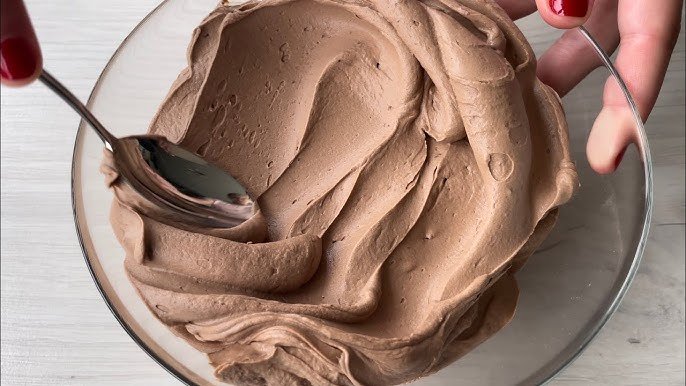 Este o cremă destul de densă, își păstrează bine forma și este perfectă pentru torturi și brioșe. Are și o particularitate interesantă: cu cât o bați mai mult, cu atât devine mai deschisă la culoare. Așa că, dacă vrei o cremă de ciocolată închisă la culoare, nu o bate prea mult.