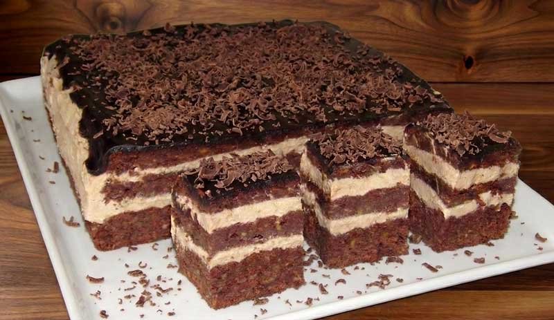 Glazura de ciocolată neagră desăvârșește desertul, adăugând o notă elegantă și un strat subțire de contrast amărui. Este genul de prăjitură care devine mai bună cu fiecare oră petrecută la rece, când aromele se întrepătrund și blaturile se înmoaie ușor în cremă.