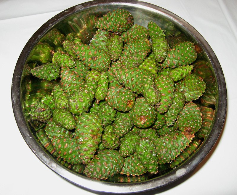 Conurile de brad trebuie adunate în a doua jumătate a primăverii și începutul verii, în funcție de regiunea în care cresc bradurile. Conurile trebuie să fie deja formate, dar încă necoapte. De culoare verde, ferme, dar ușor de înțepat cu unghiul.