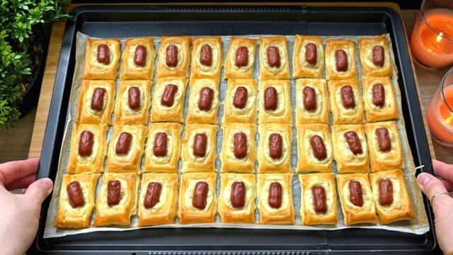 Pregătiți gustări fragede din aluat foietaj cu mini cârnăciori și brânză topită. Această gustare rapidă și simplă va încânta atât la petrecerile de familie, cât și la întâlnirile cu prietenii.