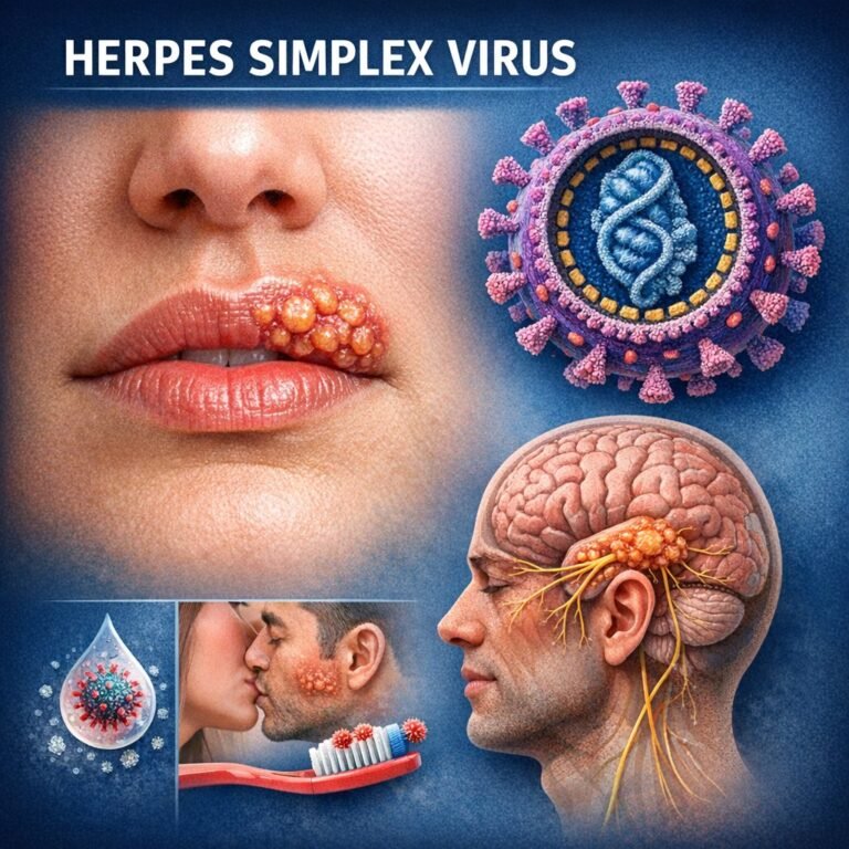 Herpes simplex (HSV) este o infecție virală foarte frecventă, care poate provoca vezicule/ulcerații dureroase (în jurul gurii sau în zona genitală) și care se transmite în principal prin contact piele-pe-piele. Este tratabilă, dar nu vindecabilă (virusul rămâne în organism și poate recidiva).
