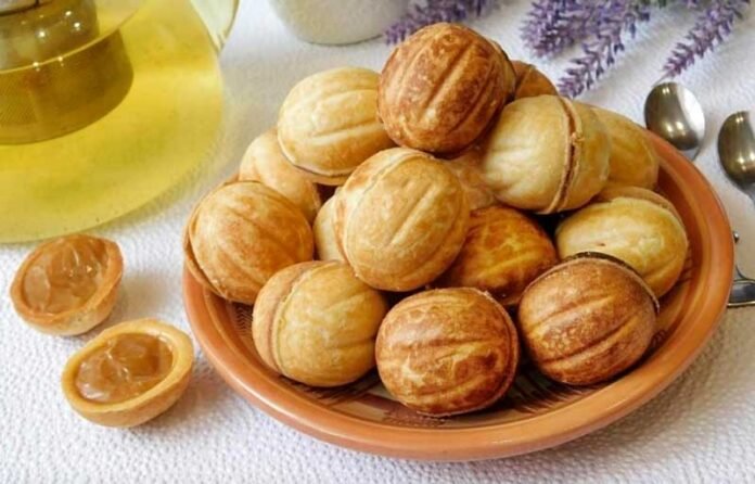 Nuci umplute cu lapte condensat fiert – o rețetă clasică și iubită în multe familii, cu gustul copilăriei, acel desert crocant la exterior și dulce-cremos în interior, perfect pentru sărbători sau momente speciale în familie.