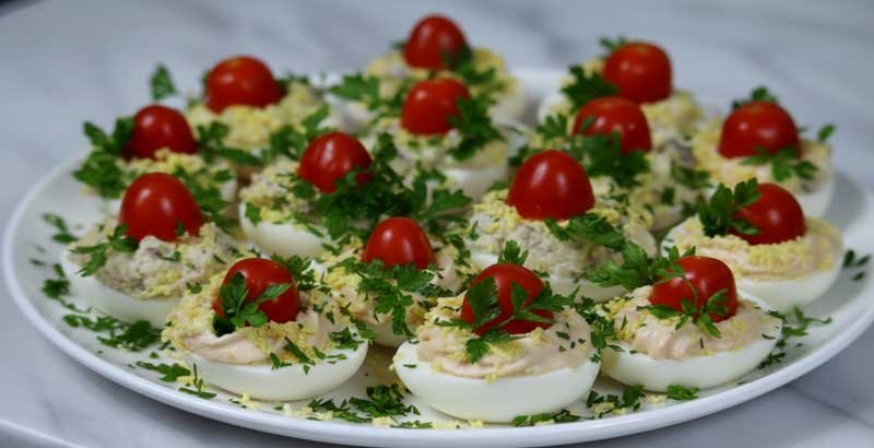 Combinațiile echilibrate între pește, maioneză, muștar, cremă de brânză și castraveți murați aduc un contrast perfect între cremos, sărat și ușor acrișor. Decorul simplu, dar atrăgător, cu roșii cherry și pătrunjel, transformă aceste ouă într-un aperitiv care impresionează și prin aspect, nu doar prin gust.