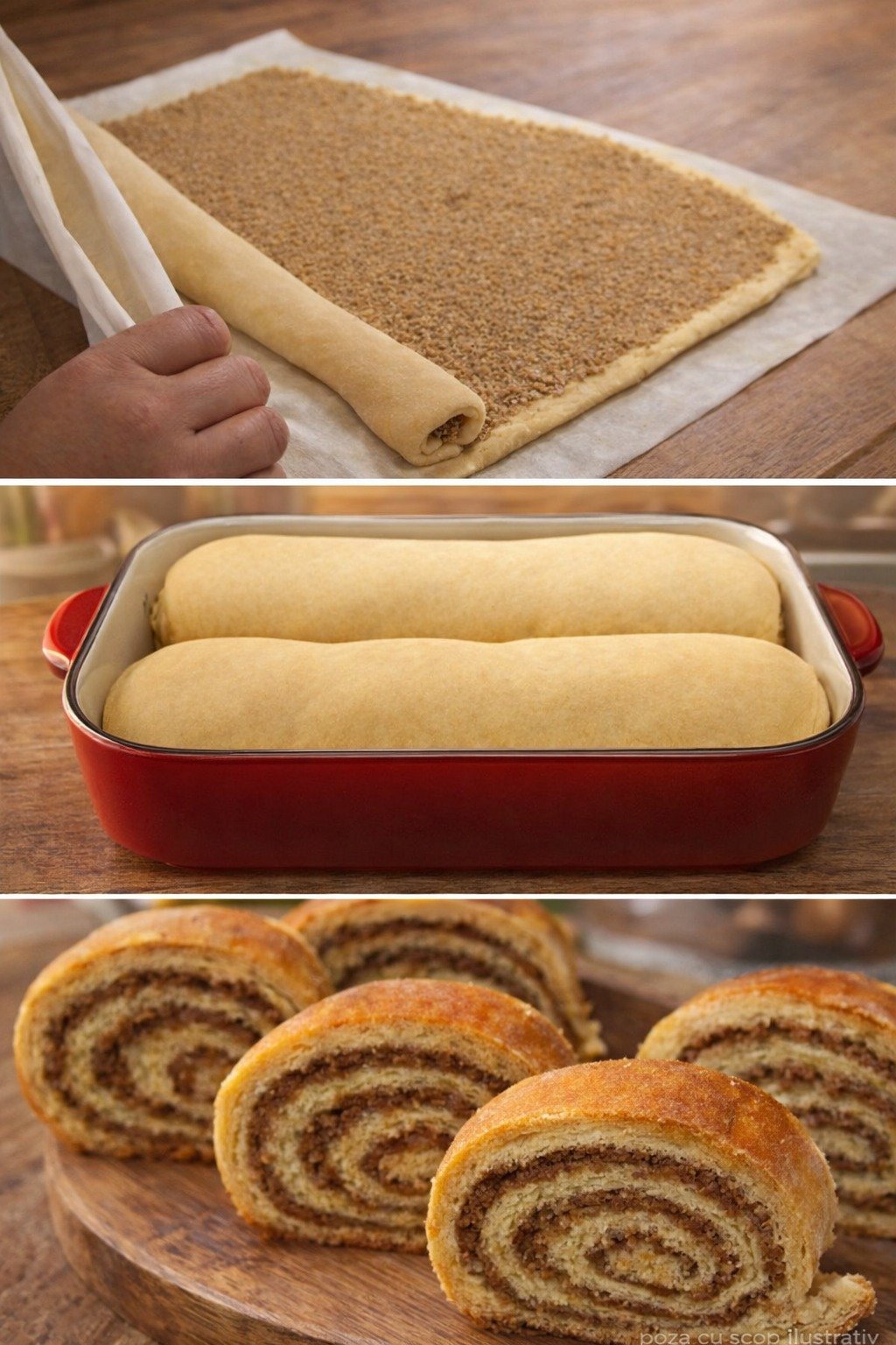 O plăcintă pufoasă, aromată și plină de umplutură de nucă, exact ca în bucătăria bunicii. Aluat moale, gust bogat și un rezultat care nu dă greș.