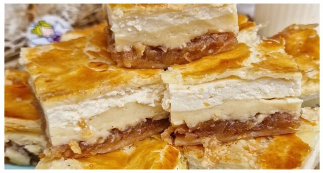 Această prăjitură cu mere, budincă de vanilie și brânză de vaci este o combinație delicioasă de arome și texturi, care îmbină prospețimea fructelor, finețea budincii și cremozitatea brânzei într-un desert complet. Straturile se așază frumos unele peste celelalte, iar fiecare mușcătură oferă un echilibru perfect între dulce, acrișor și cremos.