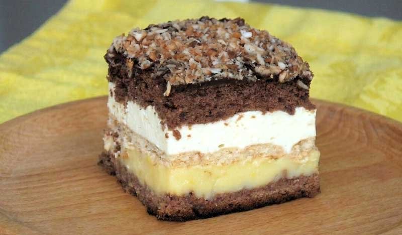 Crema de lămâie, intens aromată și ușor acrișoară, aduce o prospețime aparte, iar crema fină de brânză cu frișcă adaugă cremozitate și echilibru. Totul este completat cu o glazură catifelată de ciocolată neagră și fulgi de cocos rumeniți, care oferă un decor simplu, dar de efect.