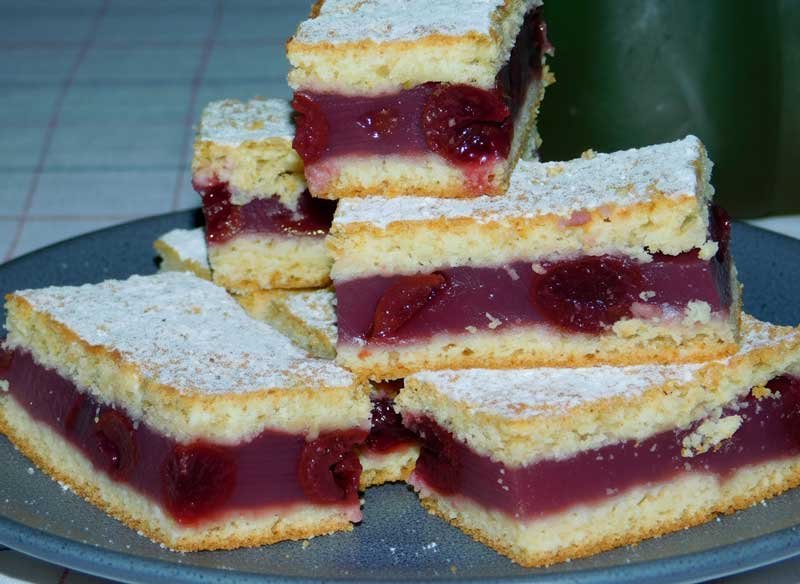 Această prăjitură cu vișine și foi fragede cu smântână este un desert de casă cu adevărat reușit – moale, acrișor, fin și echilibrat. Aluatul fraged, aromat cu coajă de lămâie, se topește în gură, iar umplutura din budincă și vișine adaugă un strat parfumat și răcoritor.