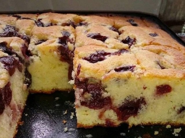 - Presărăm deasupra vișinele bine scurse și coacem până trece testul scobitorii.
