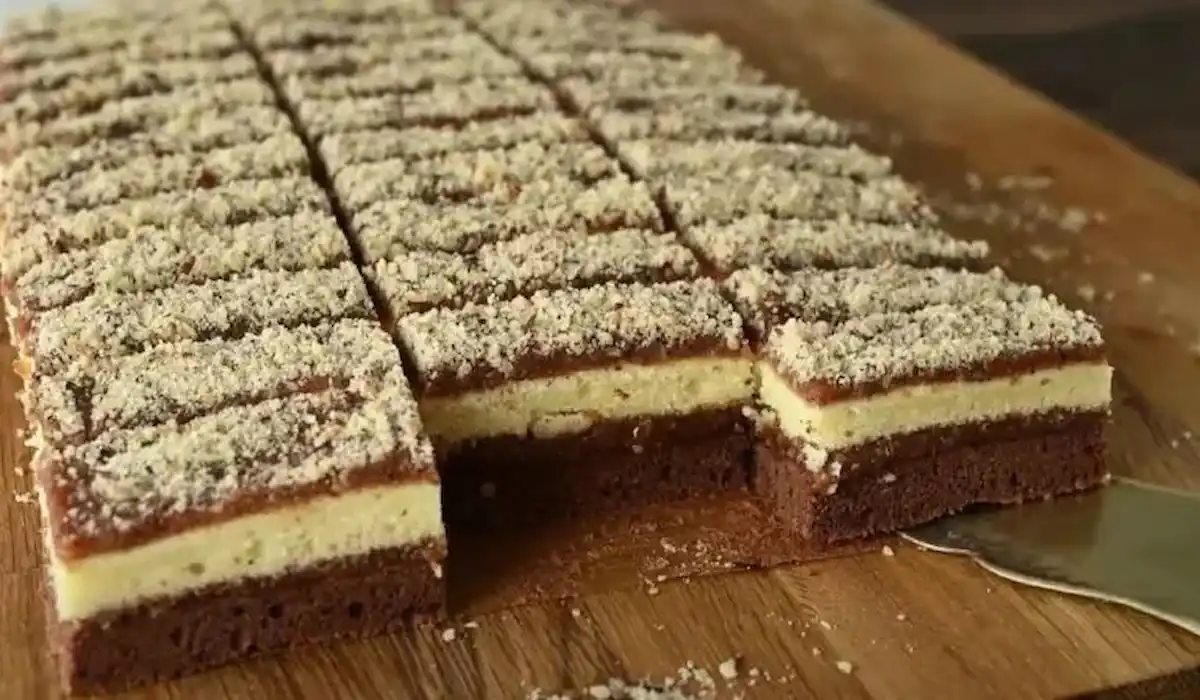 Așa este și Prăjitura Vis de Ciocolată – un desert elegant, cu blat pufos de cacao, cremă fină de vanilie și un strat crocant de ciocolată și nucă.