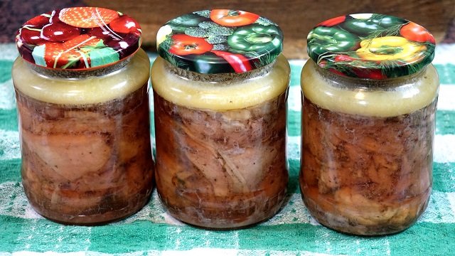 Pui în aspic, preparat termic în borcan. O porție delicioasă de carne cu o gelatină și mai gustoasă. Conservele în borcane sunt preparate tradiționale de casă, practicate de ani de zile – fie cu fructe, legume, dar și cu carne sau mâncăruri gata preparate.