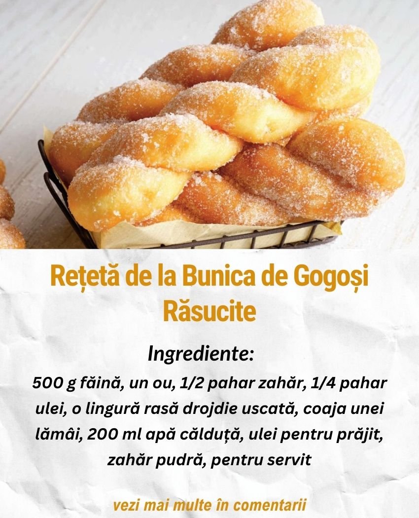 Am văzut niște gogoși răsucite în vitrina unei patiserii și cum imi este teamă de gogoșile din comerț am ajuns acasă și m-am pus pe treabă. Au ieșit geniale….vă dau și vouă rețeta!