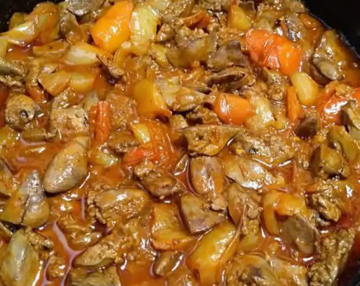 Ficatul de pui cu lecsó este o mâncare gustoasă și economică, care se prepară rapid și ușor. Cantitatea poate fi ușor ajustată în funcție de numărul de invitați și ne place în special când sunt mulți ardei, deoarece astfel există ceva de absorbit din sucul delicios.