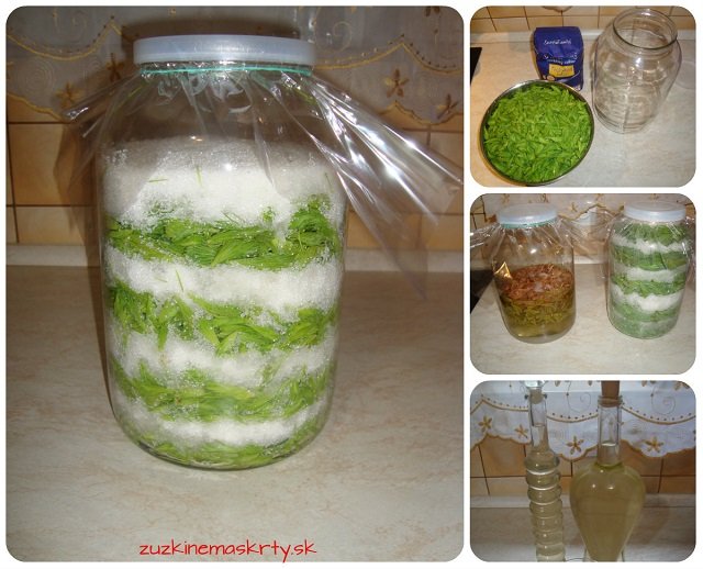Prepararea siropului este simplă: se așează mugurii de brad și zahărul în straturi într-un borcan. În rețetă am folosit zahăr, dar dacă preferați zahărul brun, puteți folosi și zahăr din trestie.