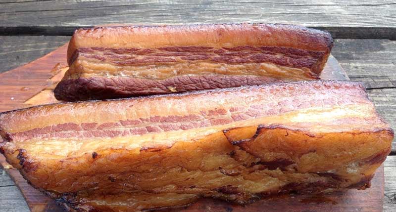 4. Scoate slănina din afumătoare și las-o să se răcească complet. Apoi freacă fiecare bucată cu usturoi și condimentele tale preferate.