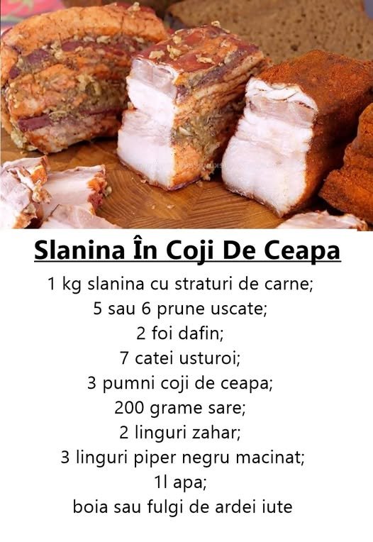 Această rețetă transformă slănina într-un preparat moale, delicat și extrem de aromat. Cojile de ceapă îi oferă o culoare aurie, iar marinada adaugă un gust unic. Ideală pentru mesele festive sau o gustare tradițională!