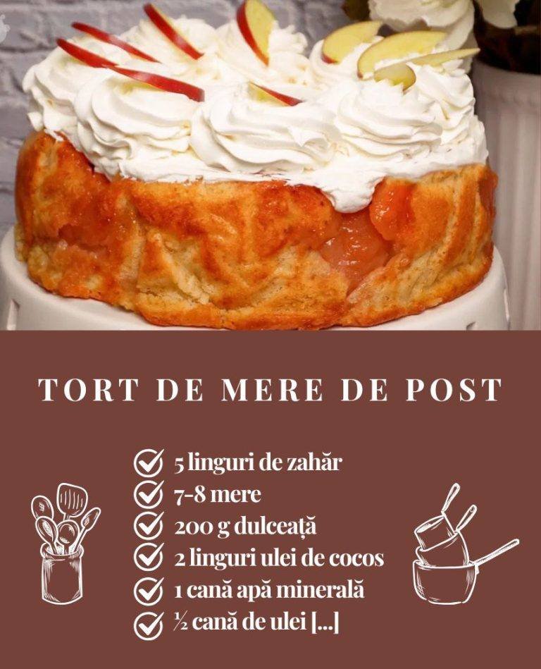 Tortul de mere de post este un desert simplu, aromat și foarte gustos, potrivit pentru perioadele de post sau pentru cei care evită produsele de origine animală. Cu ingrediente accesibile și pași simpli, acest tort devine rapid preferatul familiei.