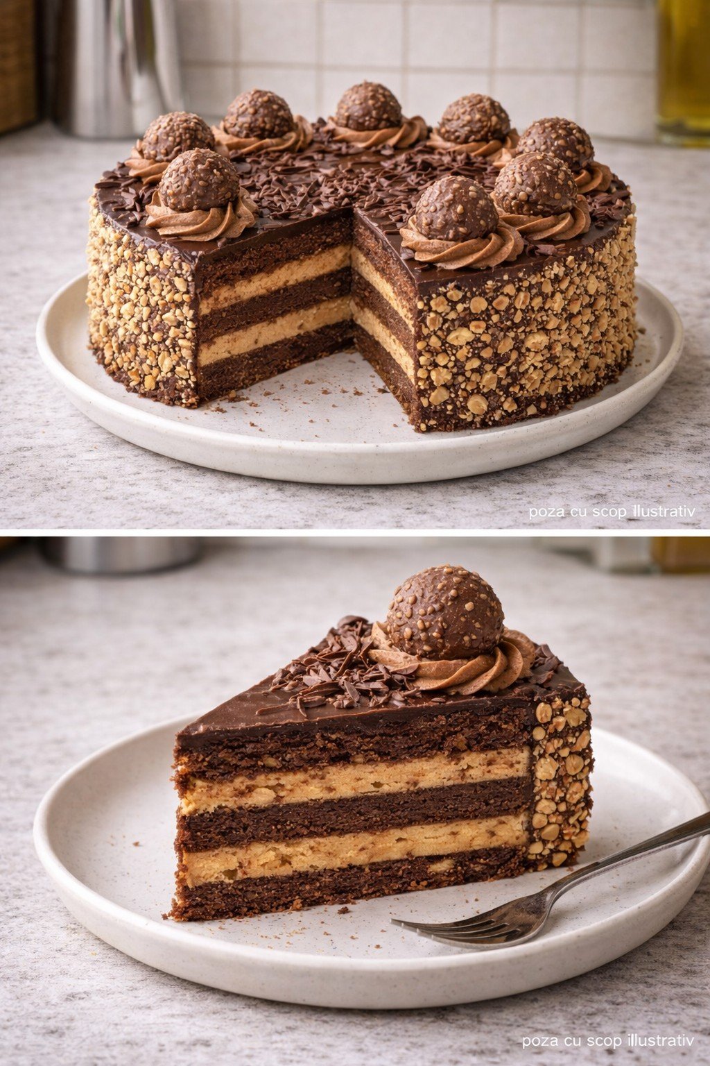 Acest tort combină ciocolata intensă cu aroma fină de alune de pădure, într-un echilibru perfect între cremos și crocant.