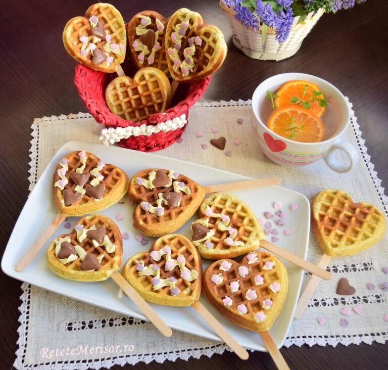 - Încălzește aparatul de waffles (sau un dispozitiv pentru mini‑waffle/pops). Unge ușor plăcile cu puțin unt/ulei.
