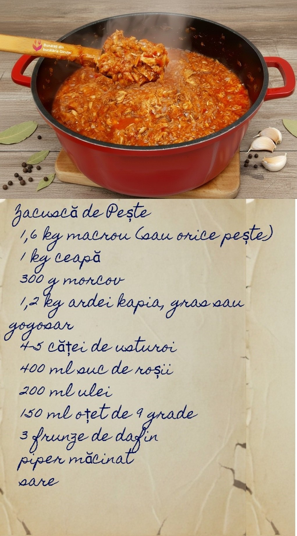 Dacă încercați rețeta mea de  zacuscă de pește  sau orice altă rețetă de pe blog, așteptați cu drag să-mi spuneți cât de mult v-au plăcut. Sugestiile voastre sunt binevenite; omul cât trăiește, învață.